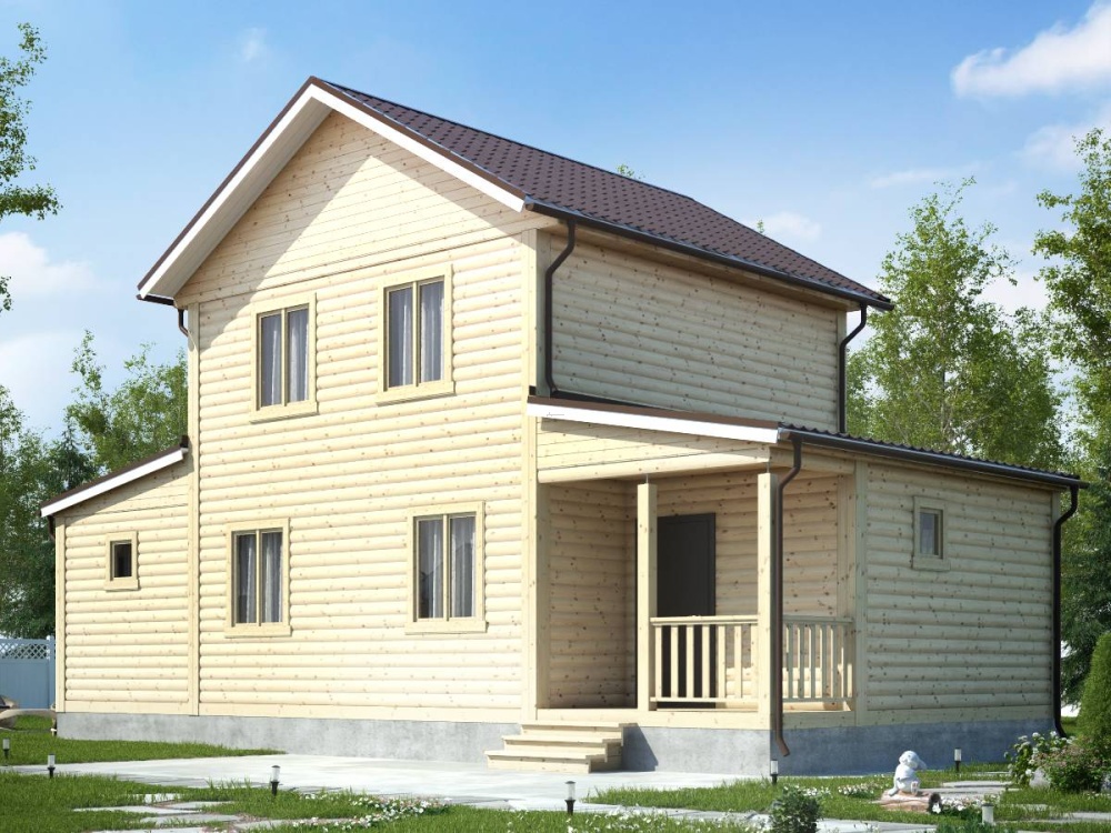Имеется 2 размера профилированного бруса: 140х140 мм и 190х140 мм. Постройки из вертикального бруса возводятся с применением бруса 140х190 мм.
