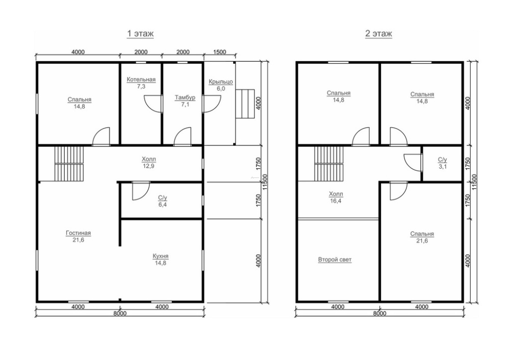 | Под усадку (без отделки) | 8х11,5 | Cруб дома 140х140 мм | 2281100 | Заказать |