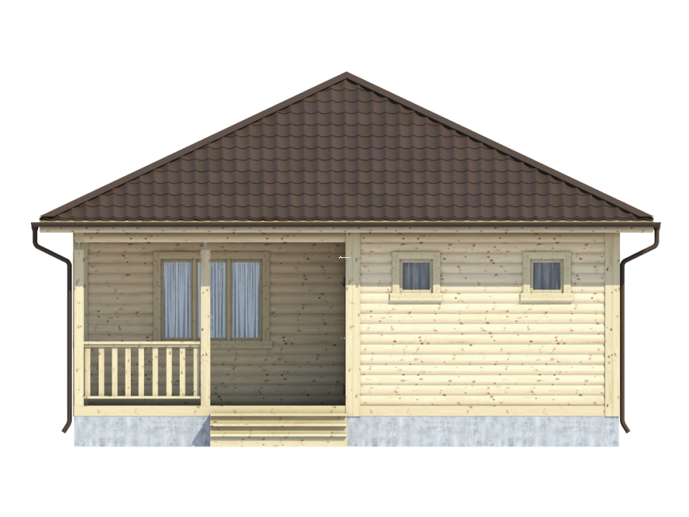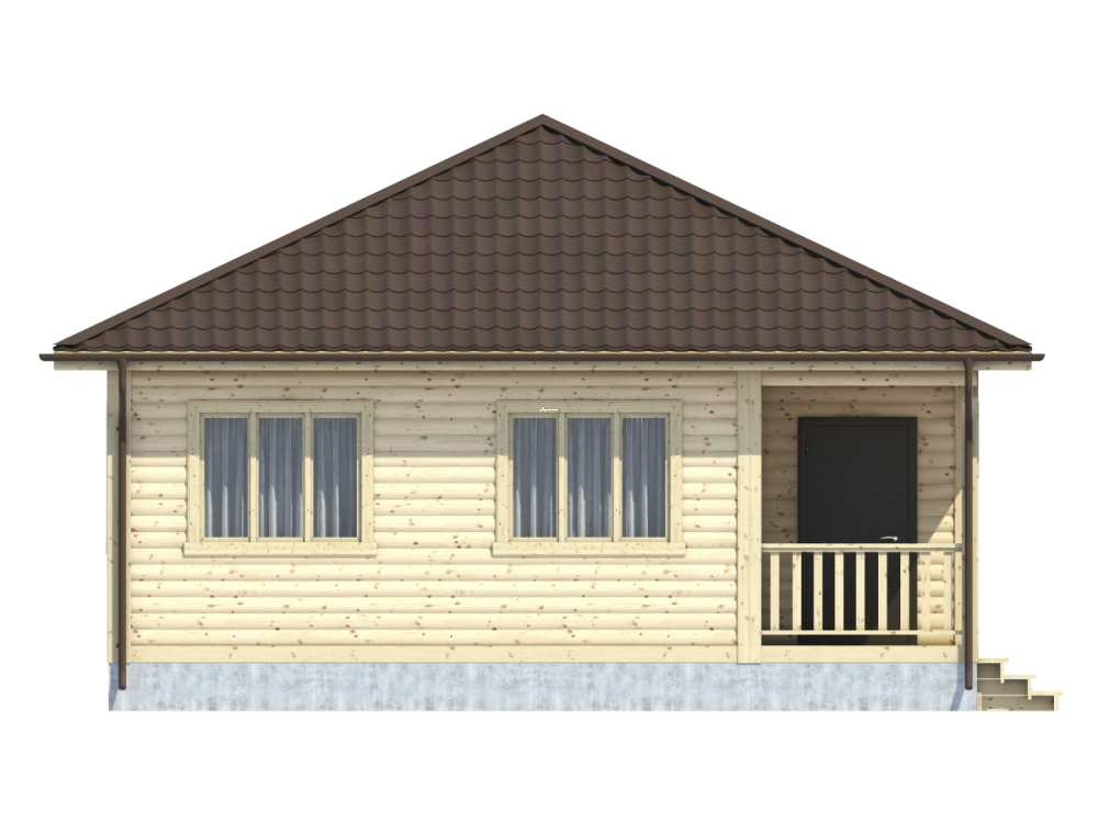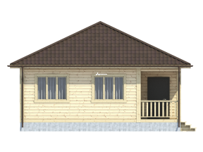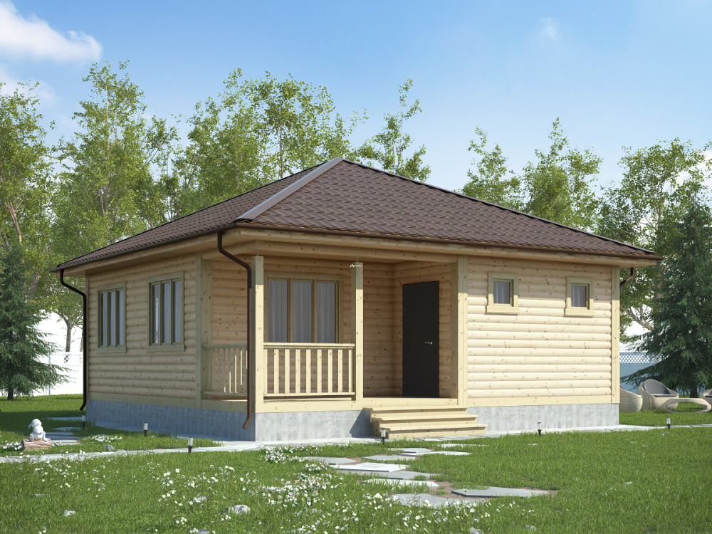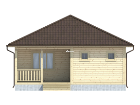 Проект одноэтажного дома из бруса с террасой, общая площадь которого составляет 58 кв.м., – это эксплуатационная надежность, функциональность и изысканный дизайн.