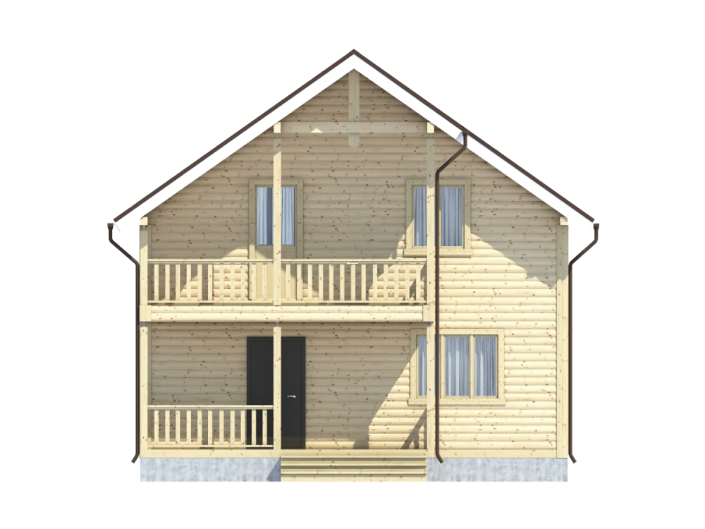 Проект полутораэтажного дома из бруса с балконом и террасой, общая площадь которого составляет 125 кв.м., – это эксплуатационная надежность, функциональность и изысканный дизайн.