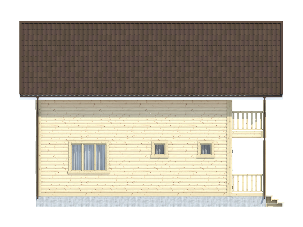 | Ограждение террасы/балкона | Перила- строганая доска. Балясины- точеные, фигурные. Либо ограждение в скандинавском стиле. Устанавливаются ступени у входа. | Отсутствует. |