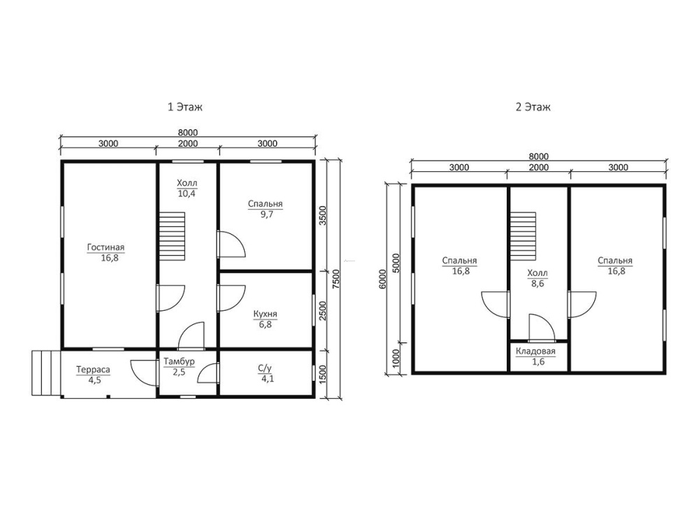 Востребованные размеры: мини - до 50м2 (как правило, 1-этажные); компактные - от 70 до 100м2 (обычно 2х этажные); большие постройки - от 150 квадратов и свыше.