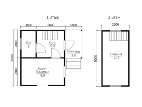 Уютный светлый дом с (5х4 м., 29.79 кв.м.), спроектированный компанией «Дача из бруса». Главное отличие проекта 2 – полутораэтажного каркасного дома с – доступная цена, предлагаемая каждому клиенту компании, а также неизменные для изделий фирмы характеристики: