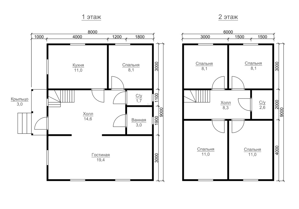 Востребованные размеры: мини - до 50м2 (как правило, 1-этажные); компактные - от 70 до 100м2 (обычно 2х этажные); большие постройки - от 150 квадратов и свыше.
