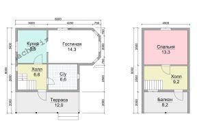 Уютный светлый дом с балконом и большой террасой (8х8 м., 58.5 кв.м.), спроектированный компанией «Дача из бруса». Главное отличие проекта 126 – полутораэтажного каркасного дома с балконом и большой террасой – доступная цена, предлагаемая каждому клиенту компании, а также неизменные для изделий фирмы характеристики: