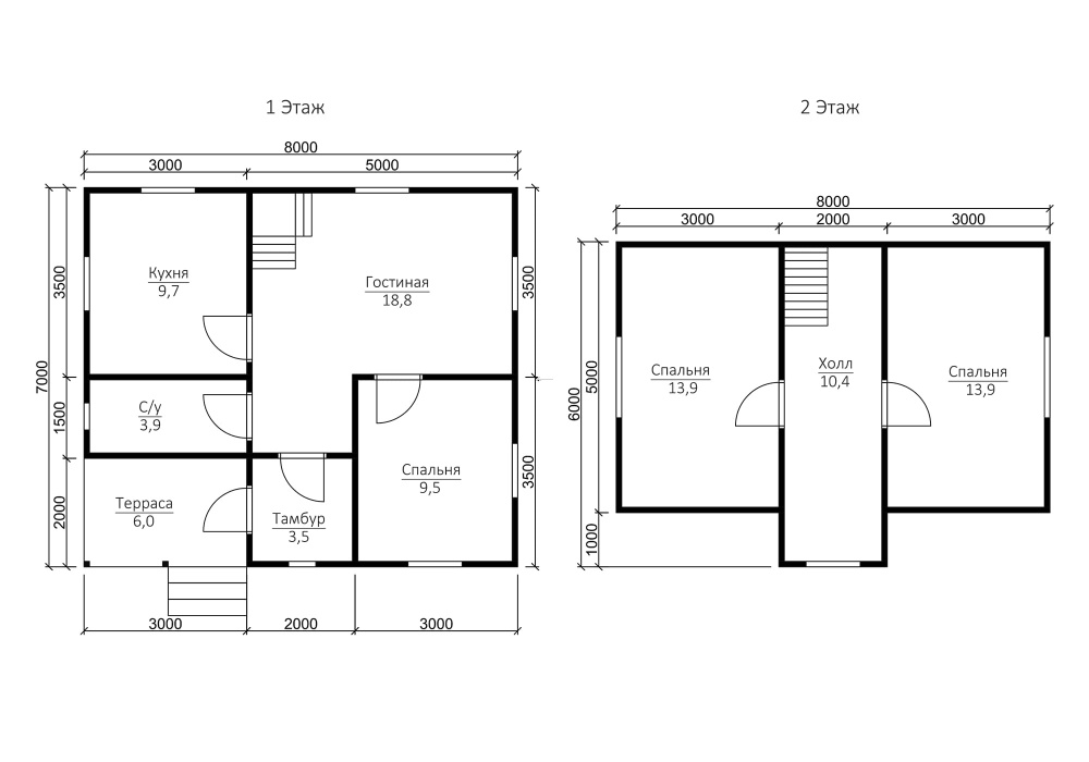 Востребованные размеры: мини - до 50м2 (как правило, 1-этажные); компактные - от 70 до 100м2 (обычно 2х этажные); большие постройки - от 150 квадратов и свыше.