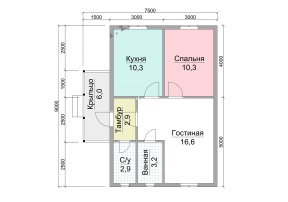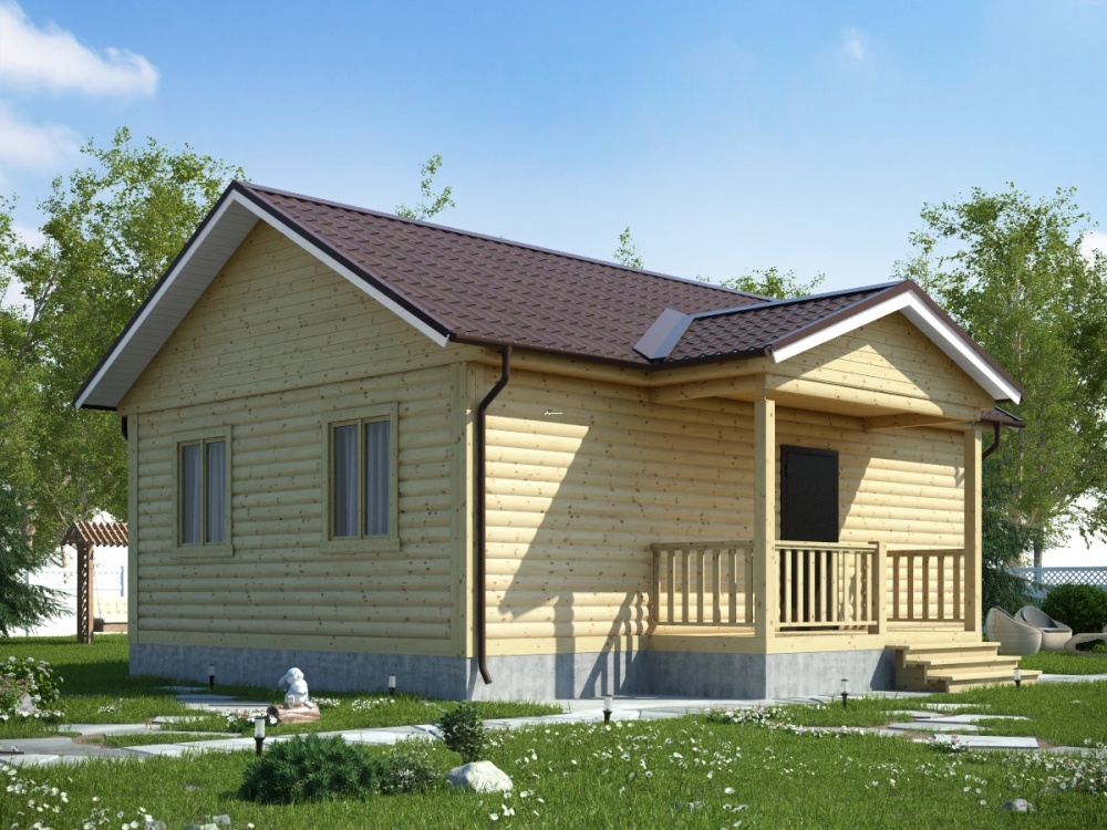 Уютный светлый дом с маленькой террасой (6х9 м., 52.2 кв.м.), спроектированный компанией «Дача из бруса». Главное отличие проекта 121 – одноэтажного каркасного дома с маленькой террасой – доступная цена, предлагаемая каждому клиенту компании, а также неизменные для изделий фирмы характеристики: