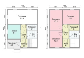 | Каркасный дом (200 мм) | 7х9 | Толщина утепления 200 мм | 3171100 | Заказать |